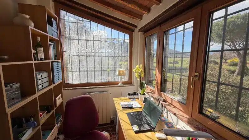 Posiadłość obejmuje 2 hektary ziemi z około 74 drzewami oliwnymi, oferując prywatność, przestrzeń oraz autentyczny toskański klimat.