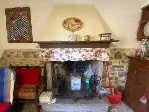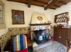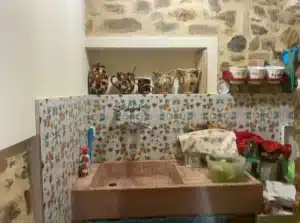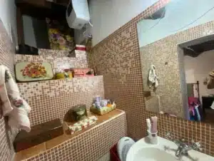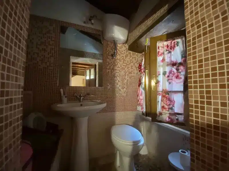 From the patio, you enter a spacious living room featuring a stone fireplace that creates a warm, homely atmosphere. Next to it is a functional kitchen area, combining rustic style with modern convenience.A set of original stone stairs leads to the sleeping area, where you’ll find a master bedroom with a balcony and private bathroom, as well as a second mezzanine bedroom that adds lightness and character to the space. Completing the property is an elegant main bathroom.