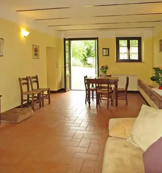 The farmhouse is already arranged to allow subdivision into two one-bedroom apartments and one studio, offering interesting flexibility for private or tourist use.